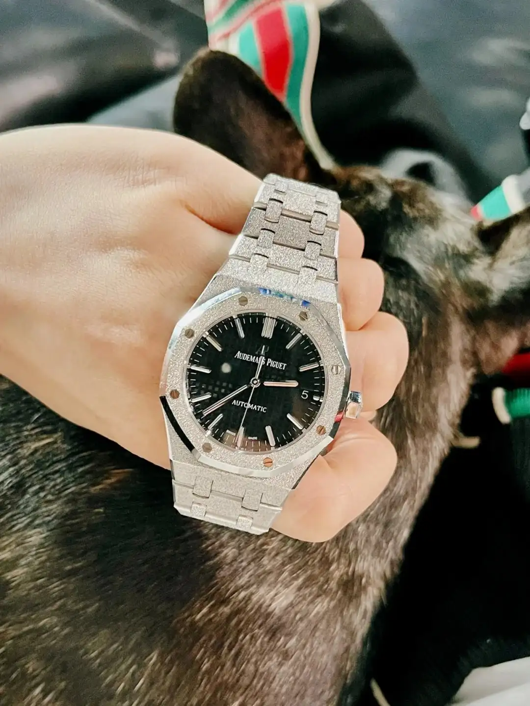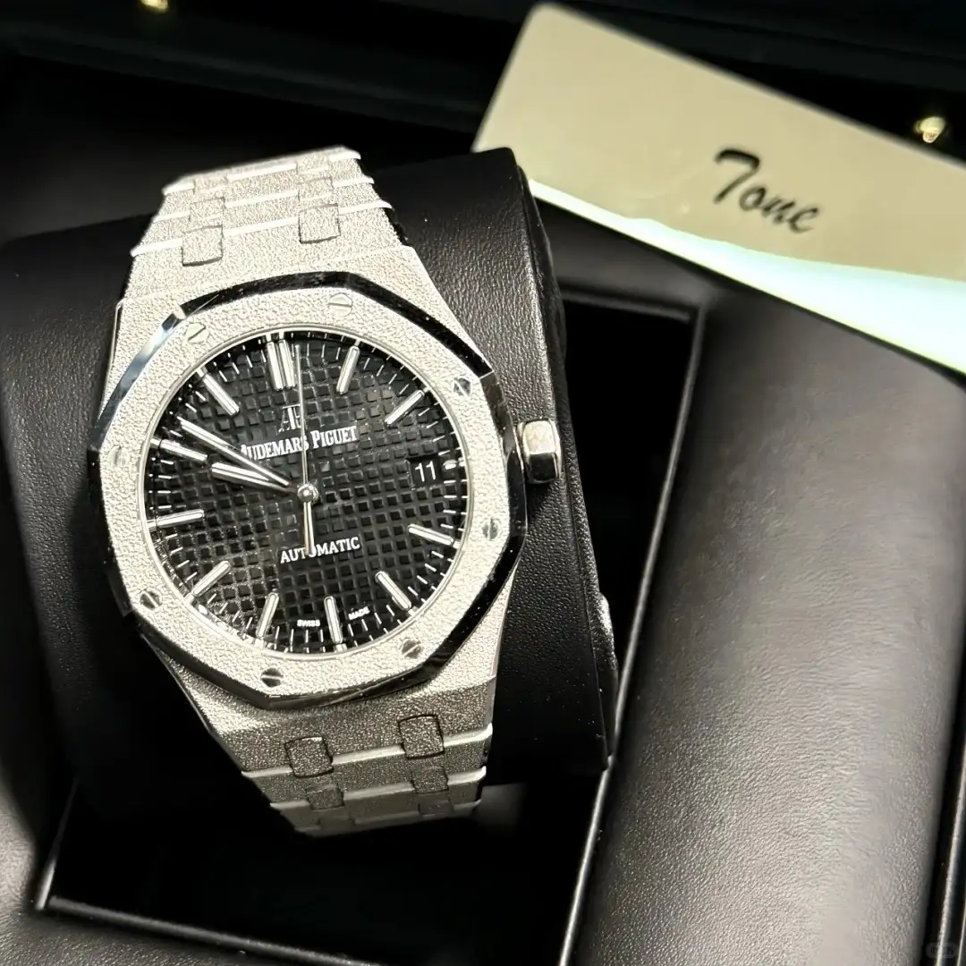 This Audemars Piguet watch is a paragon of luxury and elegance. The diamond – set stainless steel case and bracelet sparkle brilliantly, while the classic octagonal shape remains instantly recognizable. The black Tapisserie dial, with its clear date display, offers a sophisticated contrast to the opulent exterior. Driven by an automatic movement and protected by a sapphire crystal, it combines high – end design with reliable functionality. It’s a timepiece that is perfect for making a statement on special occasions, reflecting the brand’s commitment to luxury and craftsmanship.