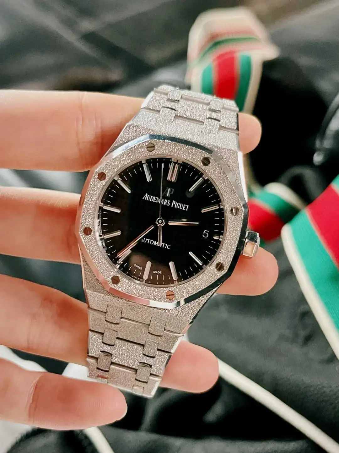 - Classic Octagonal Shape: Maintaining Audemars Piguet’s iconic octagonal case design, which is both recognizable and elegant. The octagonal shape is further enhanced by the diamond embellishments.