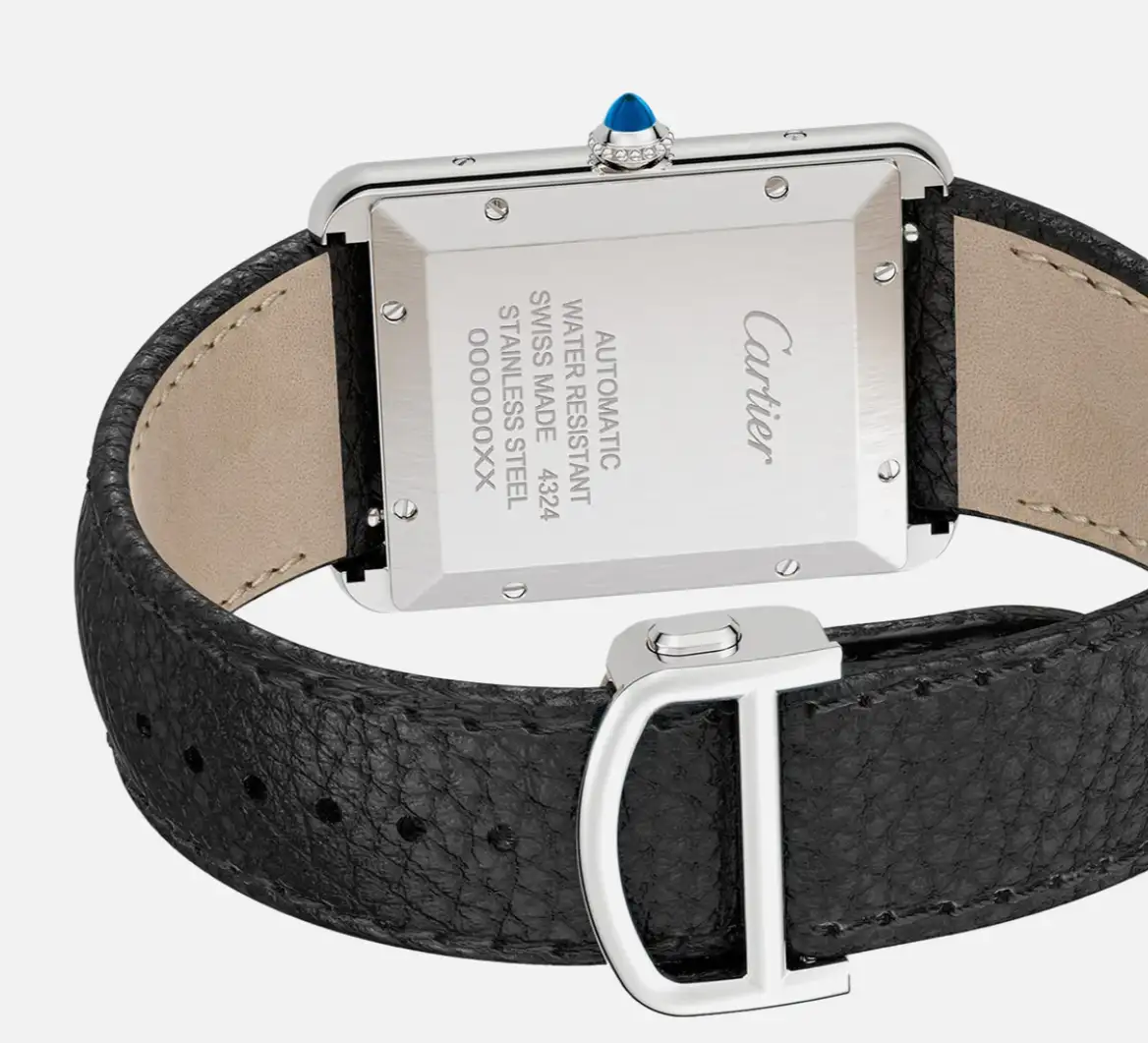 1. 34.8mm×43.5mm Stainless Steel Case: Rectangular Tank Must silhouette, merging classic and modern design.