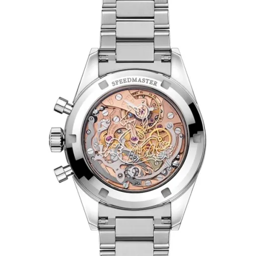 The Omega Speedmaster Men Automatic Black 18ct White Gold Watch blends opulence with precision. Its 18ct white gold case and bezel frame a bold black dial, where silver subdials and luminous markers stand out against the dark background. The chronograph function, complete with a tachymeter bezel, caters to both style and functionality, while the polished stainless steel bracelet ensures all-day comfort. Ideal for discerning gentlemen, this timepiece merges vintage racing-inspired design with modern luxury, making it a standout piece for any occasion.