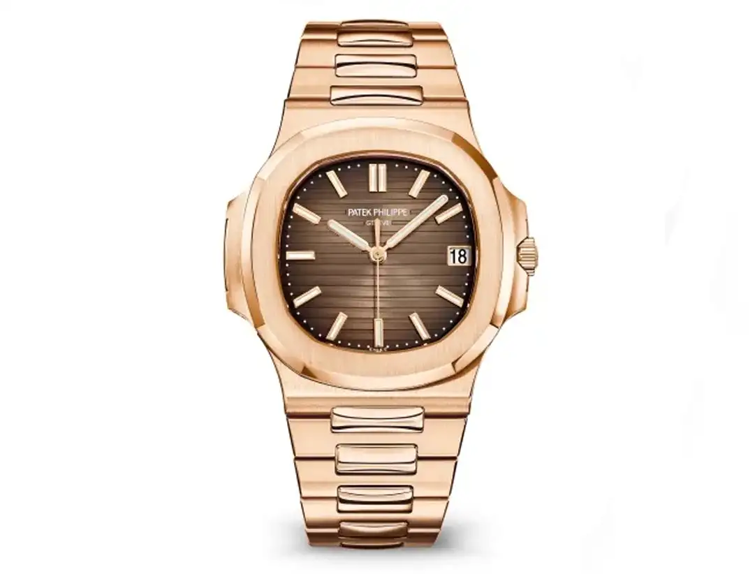 • Dial: Features a distinctive brown, horizontally – striped dial with rose gold – toned hour markers. The dial design combines sporty inspiration with sophisticated detailing, embodying the essence of Patek Philippe’s ability to merge form and function in the Nautilus series.