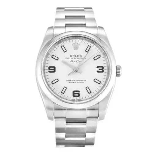 • Dial: Features a white dial with large, luminescent hour markers and numerals (3, 6, 9). The dial design maintains the iconic Air – King aesthetic, presenting a clean and refined look. The luminescent coating on markers ensures legibility in low – light conditions.