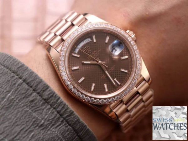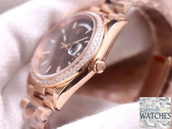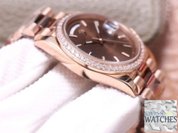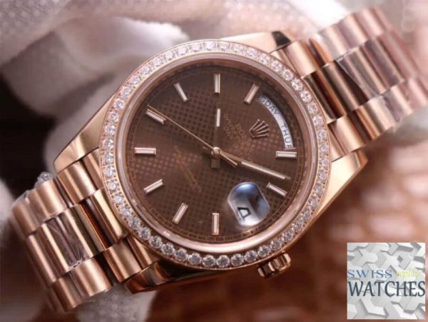 Rolex day date brown dial sapphire crystal 40mm swiss replica m228345rbr.0005 is taken in kind. “Swiss Models” series products have better movements and closer to the original genuine. If you need the original box, other strap or deep waterproof, please contact us.