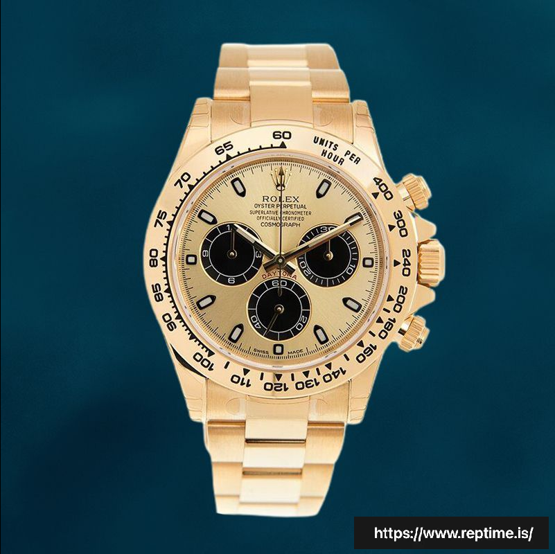 The Rolex Daytona Gold Green Dial Chronograph Watch by C Factory exudes luxury. With a gold case, a unique green dial, and carefully upgraded components, it offers an authentic aesthetic and functionality. Ideal for sophisticated watch connoisseurs seeking a blend of style and precision.