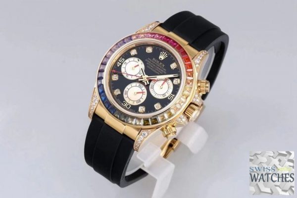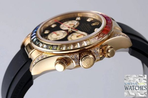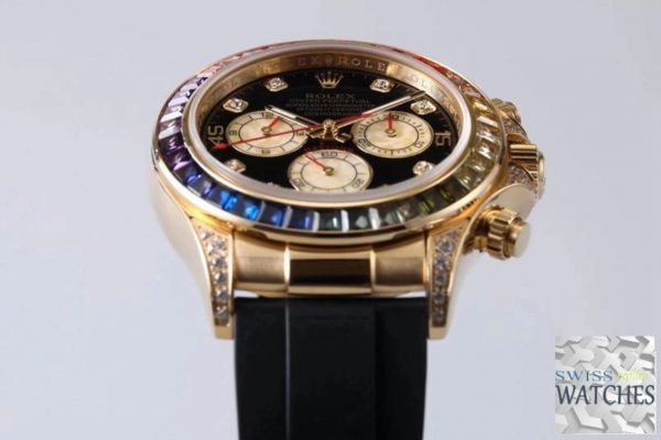 Rolex daytona black dial waterproof 40mm swiss replica 116598rbow.1 is taken in kind. “Swiss Models” series products have better movements and closer to the original genuine. If you need the original box, other strap or deep waterproof, please contact us.