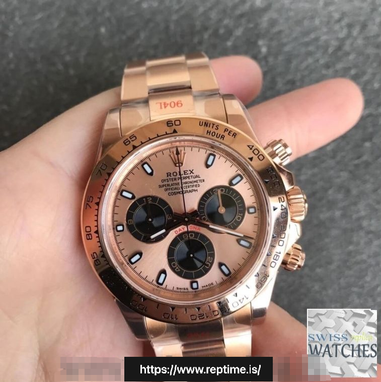 Rolex daytona champagne dial rose gold 40mm swiss replica m116505.0009 is taken in kind. “Swiss Models” series products have better movements and closer to the original genuine. If you need the original box, other strap or deep waterproof, please contact us.