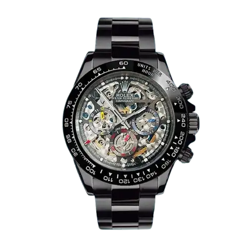 - Skeleton Dial: The dial showcases an intricate skeleton design, revealing the inner workings of the watch. This not only provides a visually captivating display but also highlights Rolex’s craftsmanship and precision engineering.