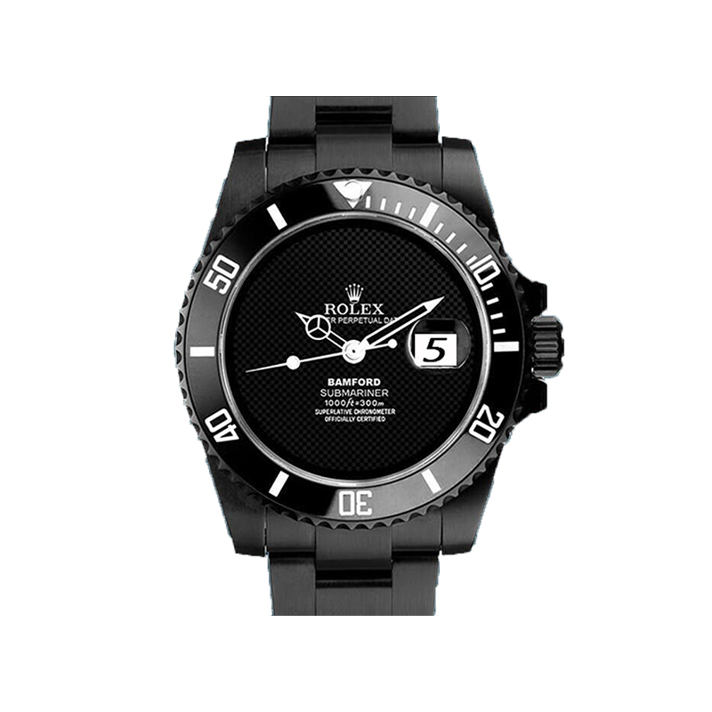 This Rolex Submariner 40mm Bamford men’s watch features a black dial and black – tone finish. With a sapphire crystal and stainless steel build, it combines style and durability.