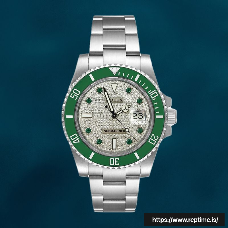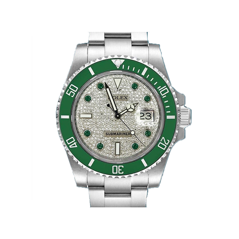 This Rolex Submariner 40mm men’s watch features a ceramics bezel, diamond – encrusted dial, and Oyster bracelet. A perfect blend of luxury and durability.